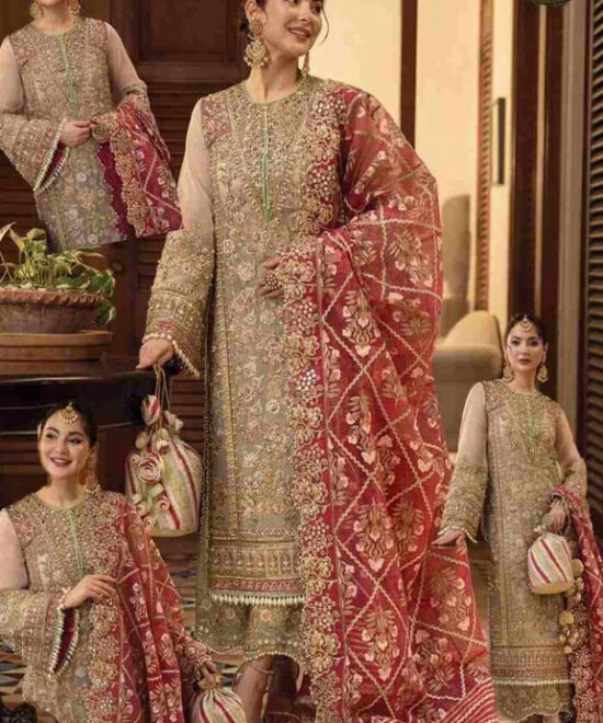 Asim Jofa 3Pcs Embroidered Chiffon Dress