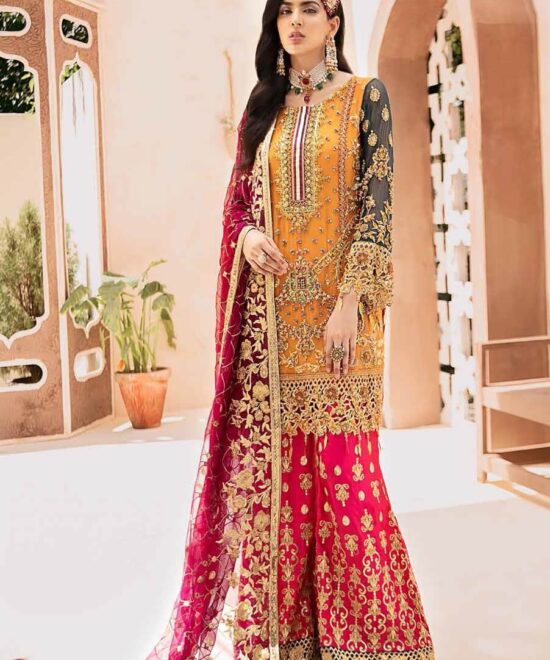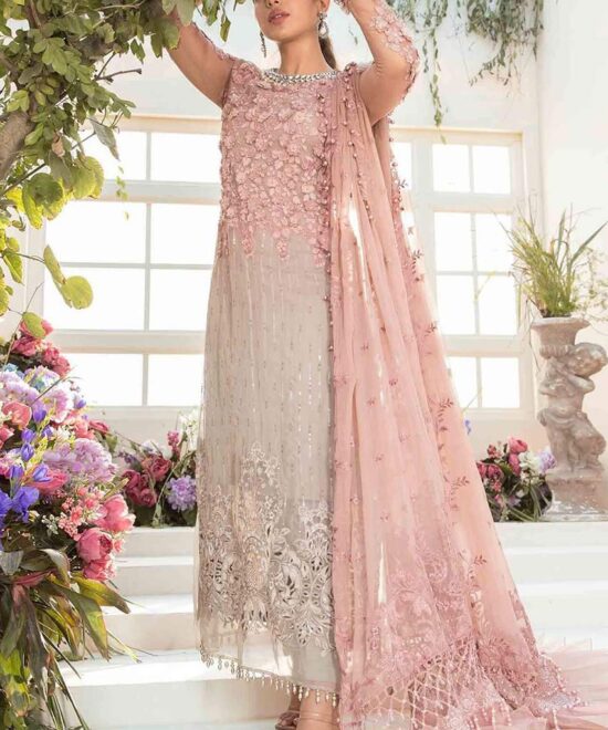 Maria B 3Pcs Hand Embellished Chiffon Dress | Unstitched