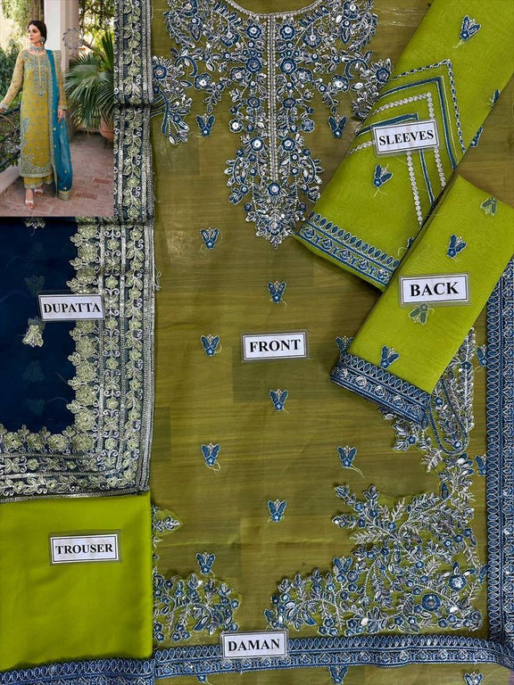 Akber Aslam 3Pcs Green Organza Dress | Unstitched