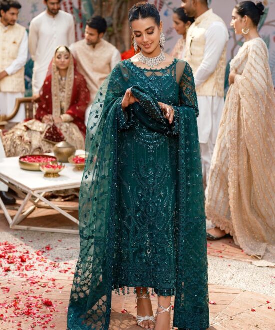 Akber Aslam 3Pcs Green Organza Dress | Unstitched