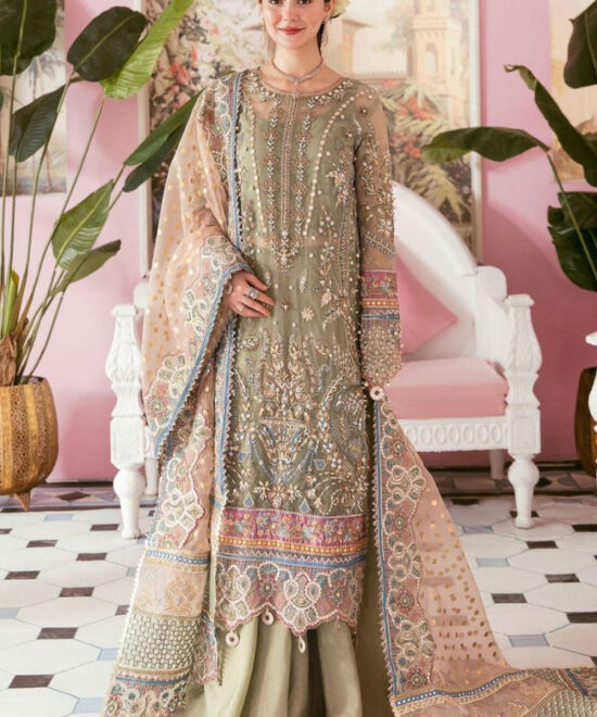 Akber Aslam 3Pcs Green Organza Dress | Unstitched