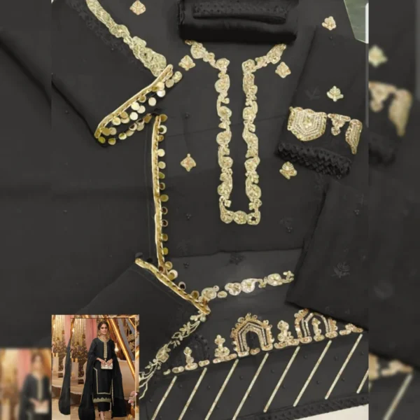 Asim Jofa 3Pcs Black Organza Dress