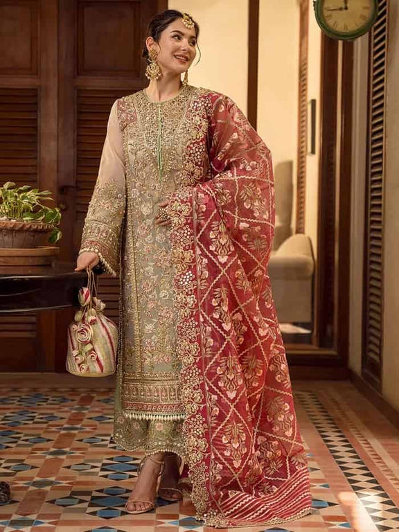 Organza Dupatta Fully Embroidered with 4-Side Borders