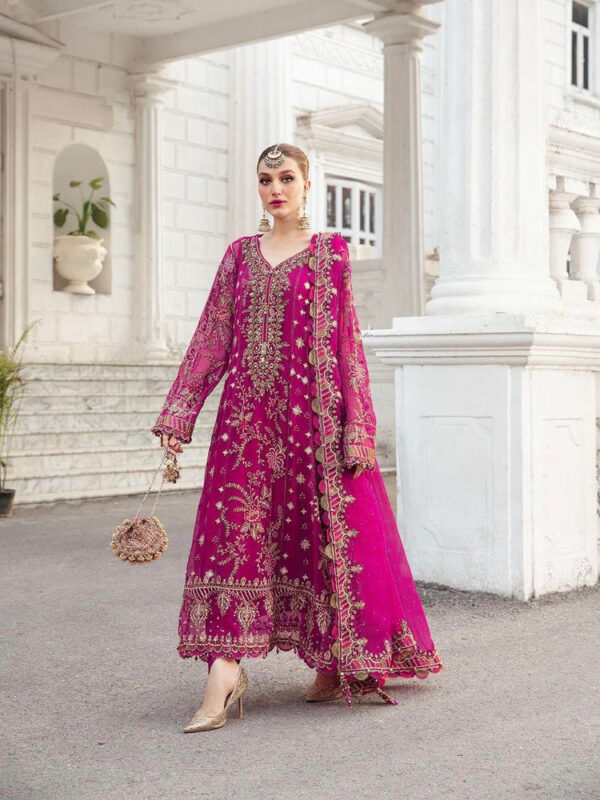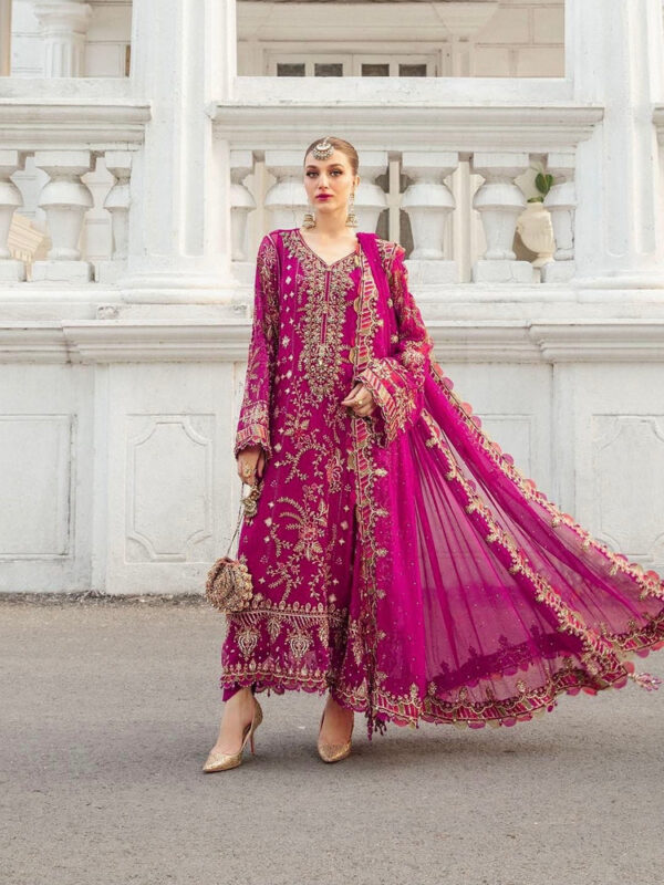 Maria.B Luxury Chiffon Pinkish Red Dress Embroidered 3 Piece Unstitched