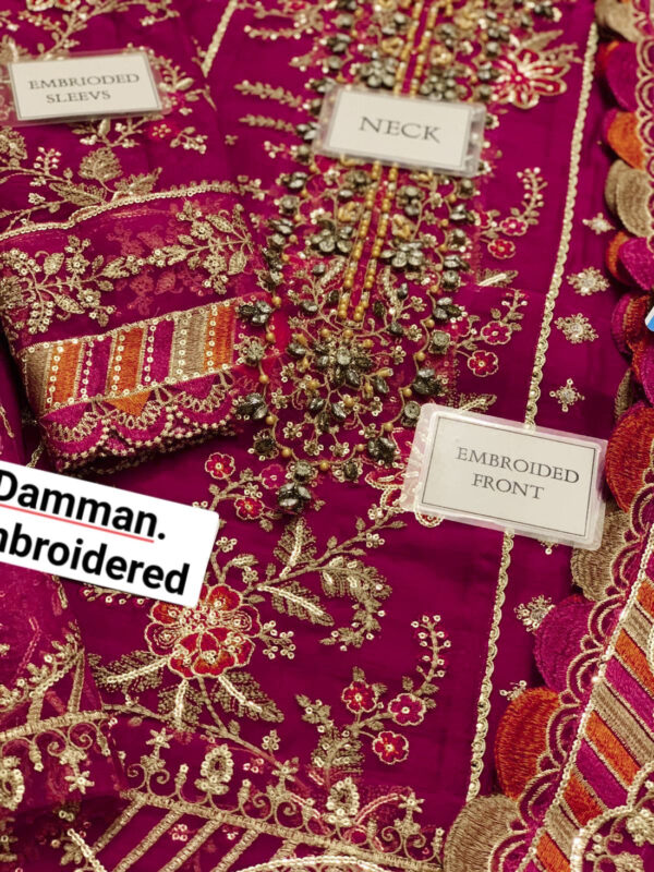 - ✓ chiffon plain back with heavy embroidered spengle work back daman boarder