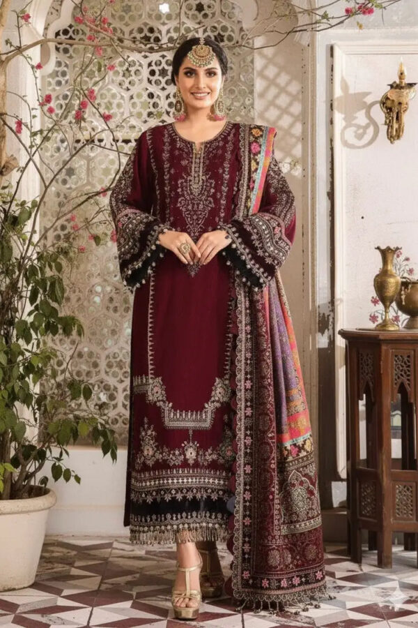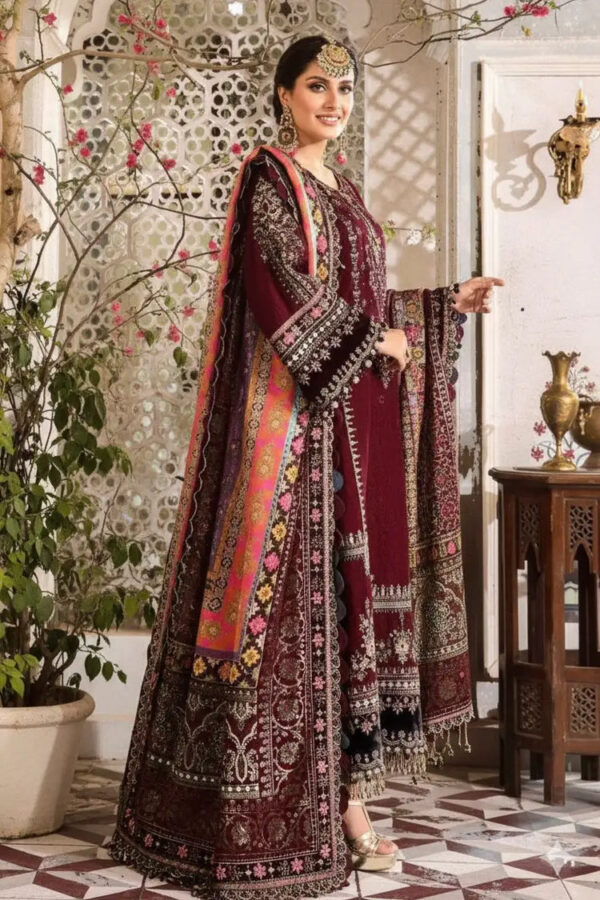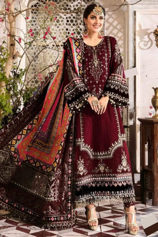 Maria B Mahroon 3Pc Chiffon Dress Digital Silk Dupatta