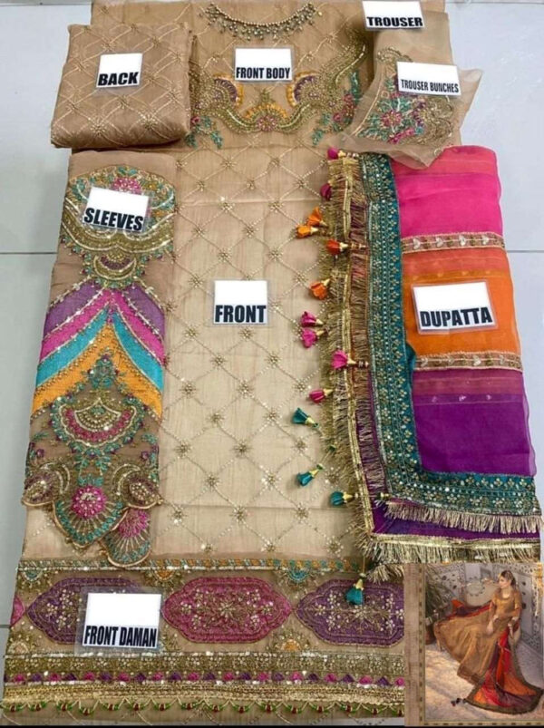 - ✓ Dupatta on organza fully embroidered multi panels with 4 side embroidered border