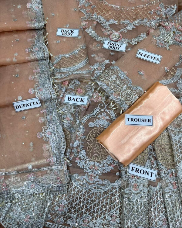 - ✔ Heavy sequence net embroidery dupatta with punching Moti & pearls attached